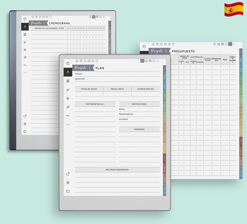 Organiza hasta diez proyectos con secciones dedicadas para la planificación, el seguimiento del progreso y los recursos. Visualiza tus metas y mantén cada proyecto perfectamente estructurado.